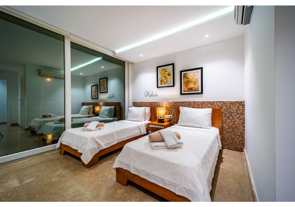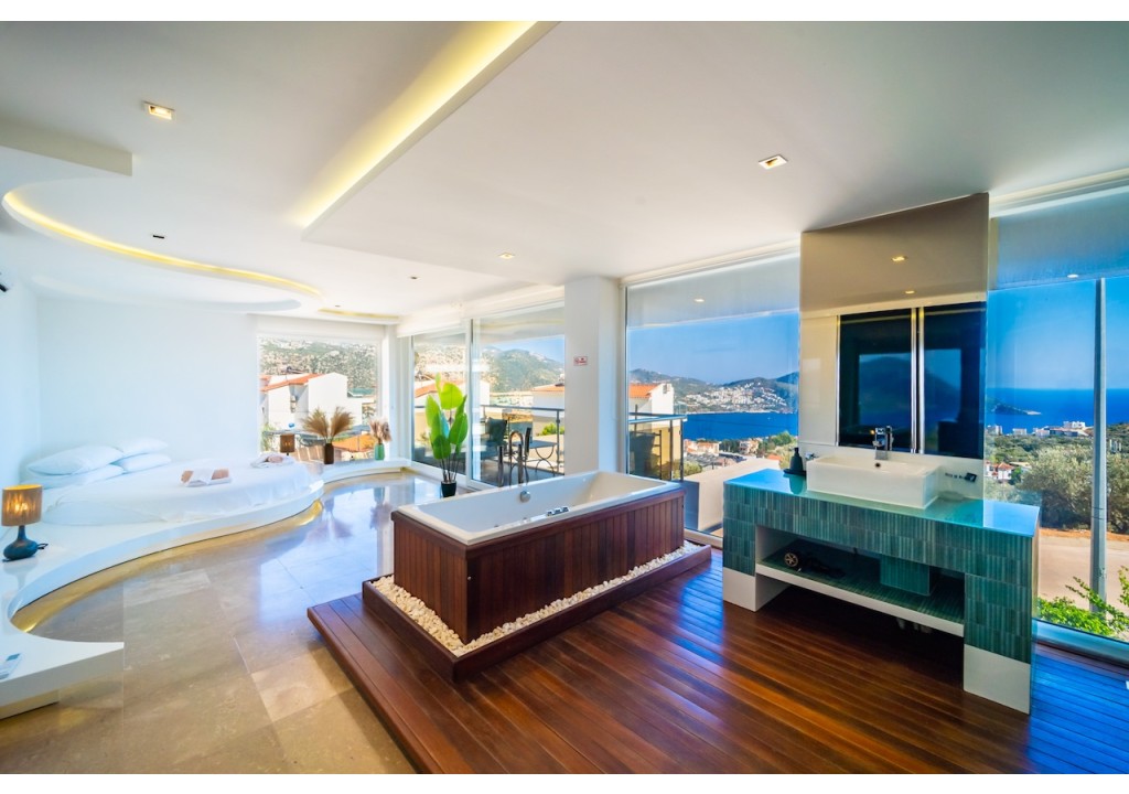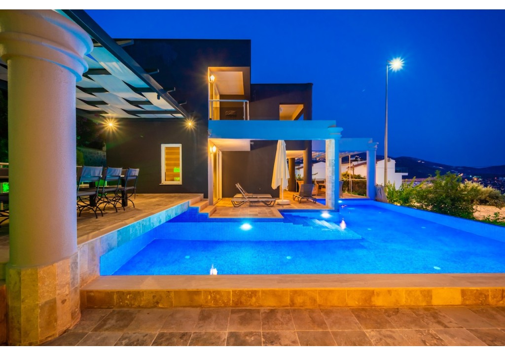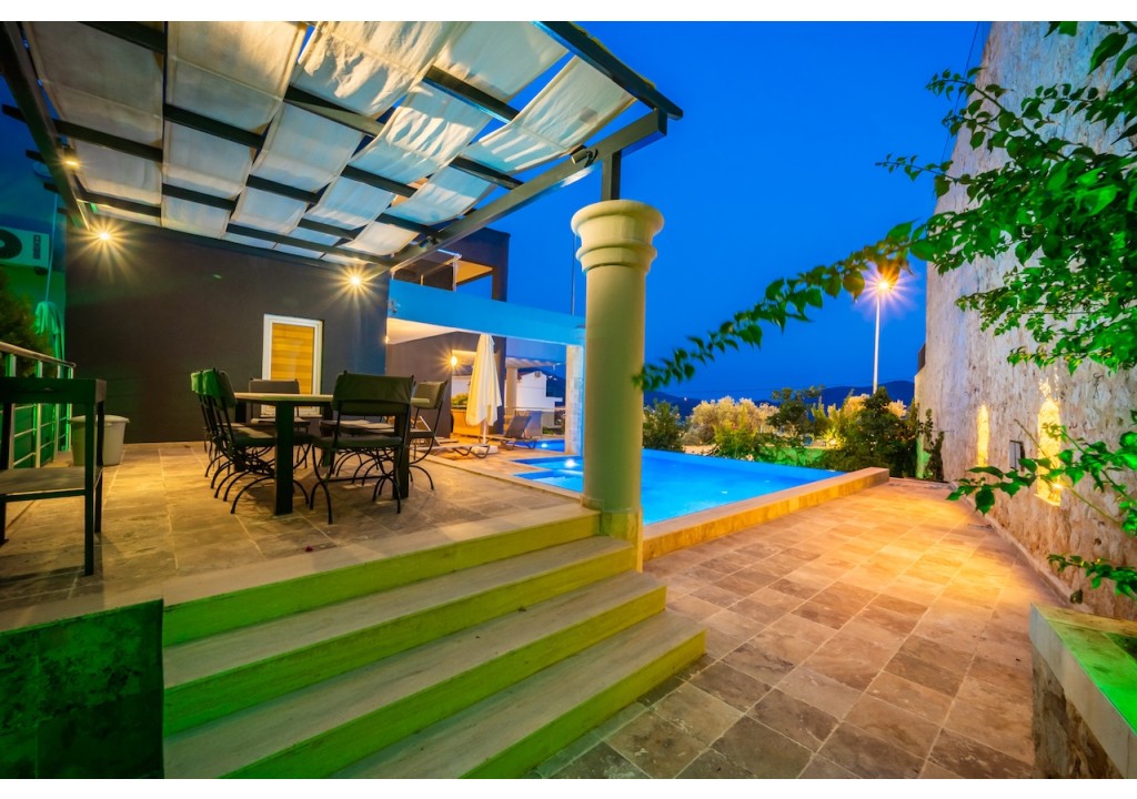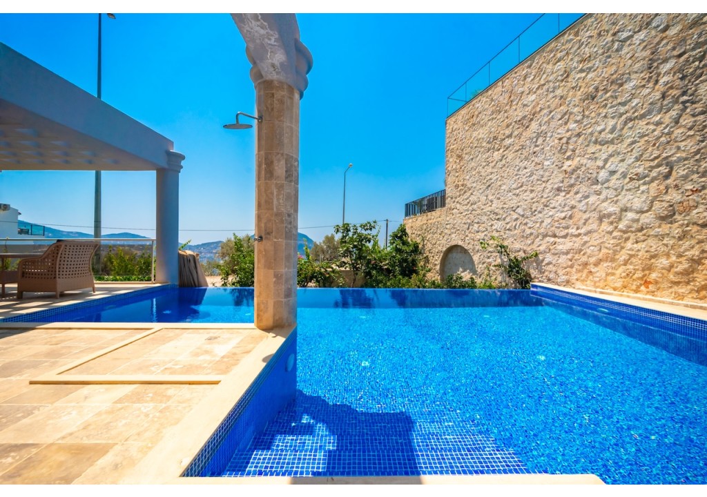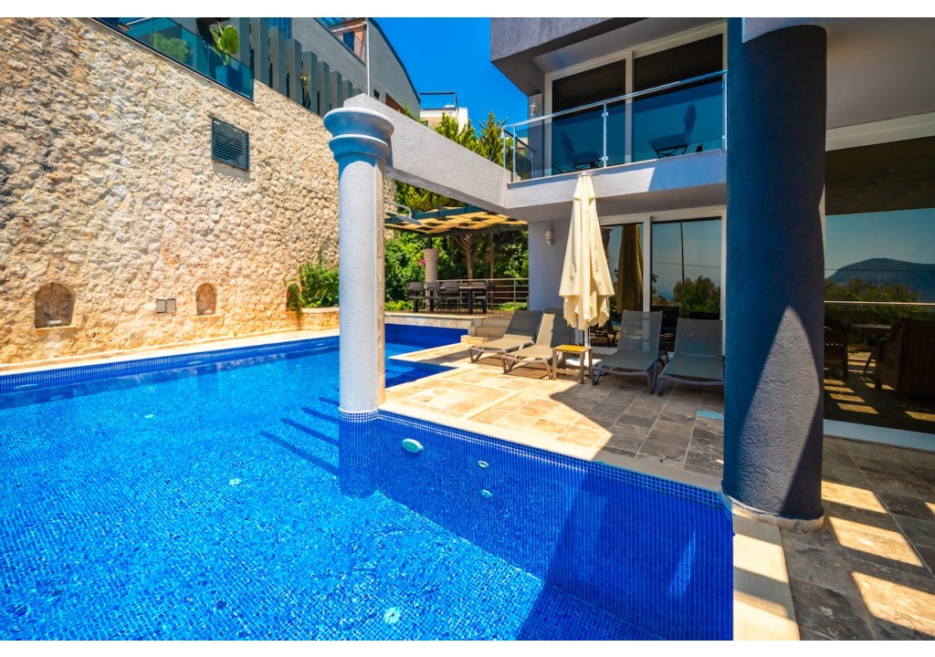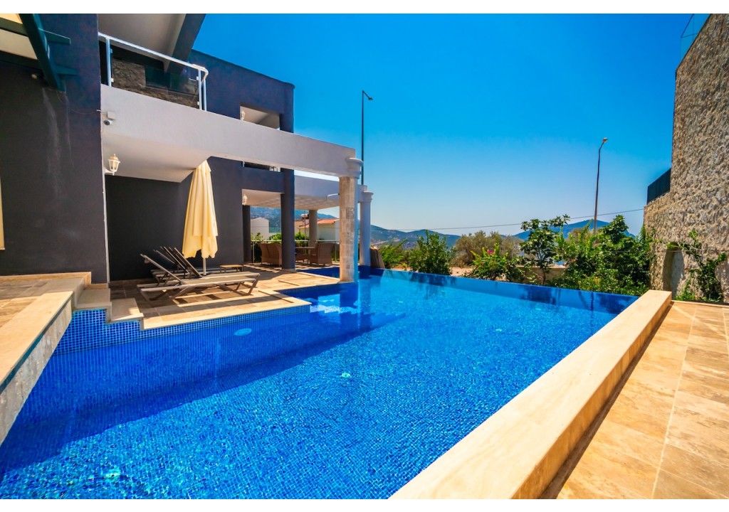Villa Alba is a comfortable 4-bedroom villa located in the Ortaalan area of Kalkan. Situated very close to the town center, our villa offers a pleasant holiday experience with its unique sea view and spacious living areas. It is an ideal accommodation option for large families and groups of friends.