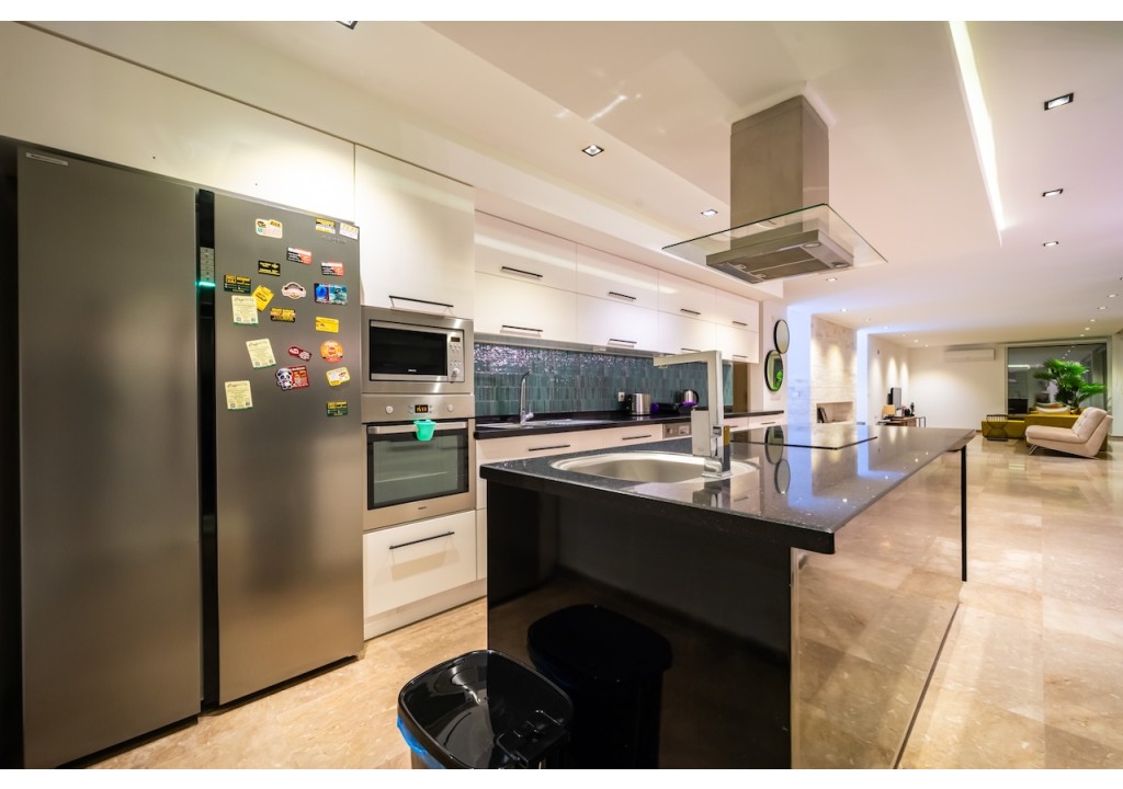 Details: Refrigerator, dishwasher, oven, 4-burner hob, microwave oven, electric kettle, dining set for 10 people, pans, pots, cutlery and kitchen utensils are available.