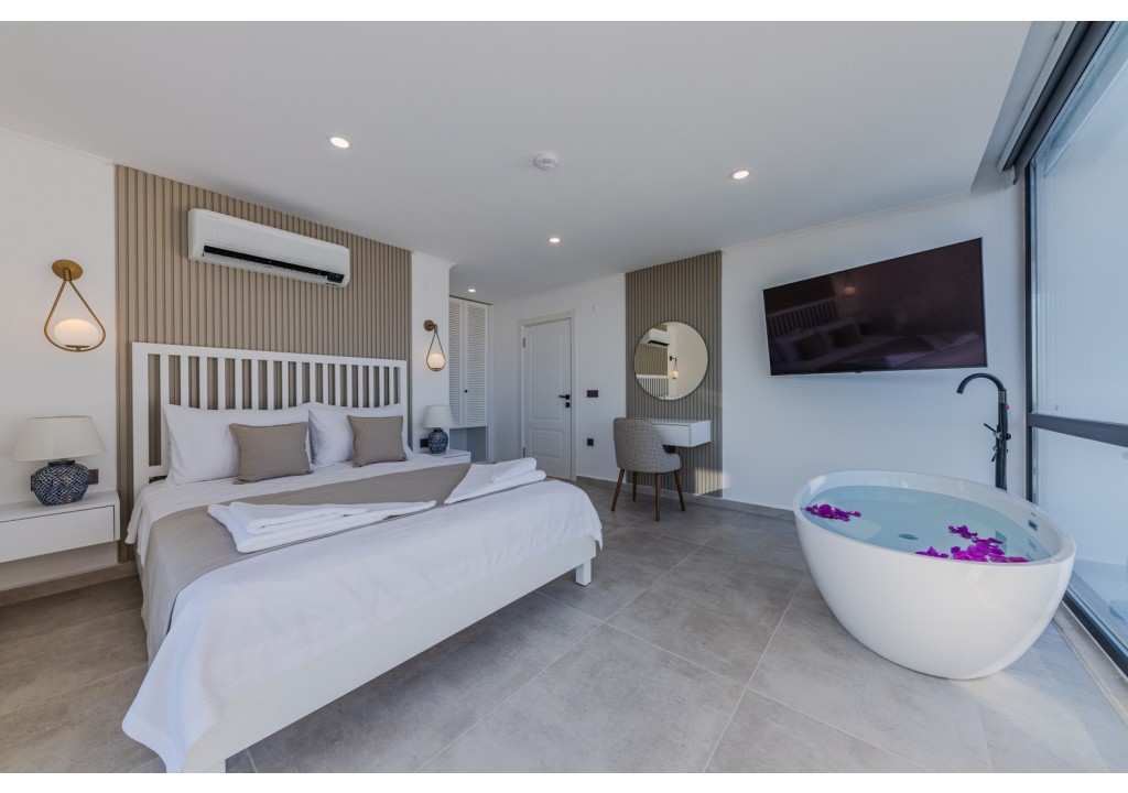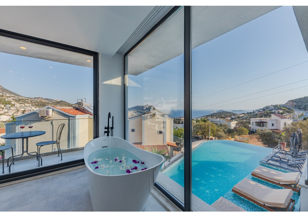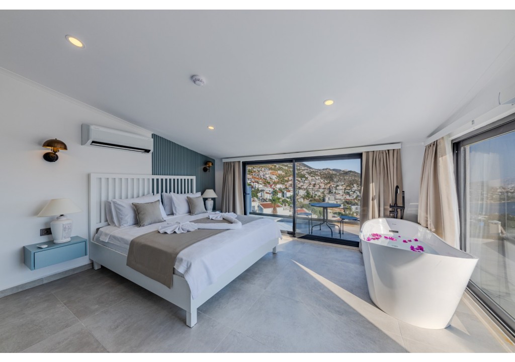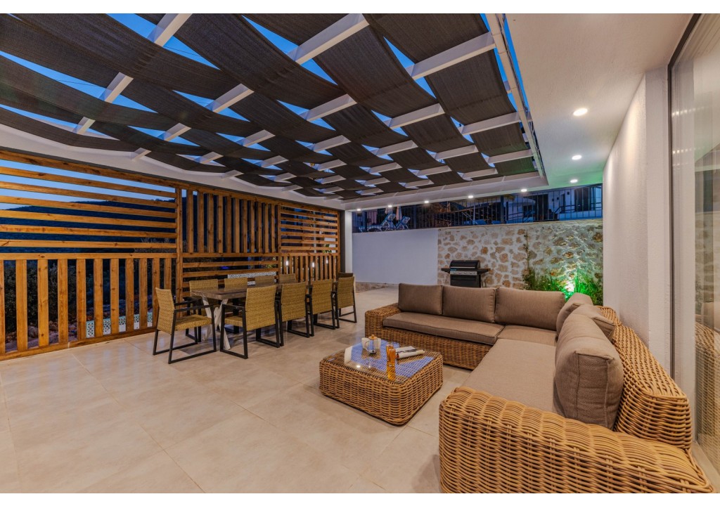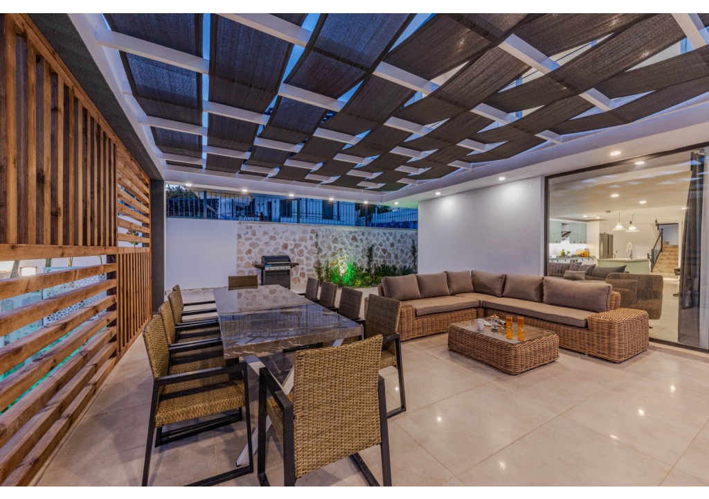 Villa Emporium, located in the Kızıltaş area of Kalkan, is a luxury villa offering spacious and comfortable accommodation with its 5 bedrooms and capacity for 10 guests. With its peaceful location and airy living spaces, it is an ideal holiday option for large families.
