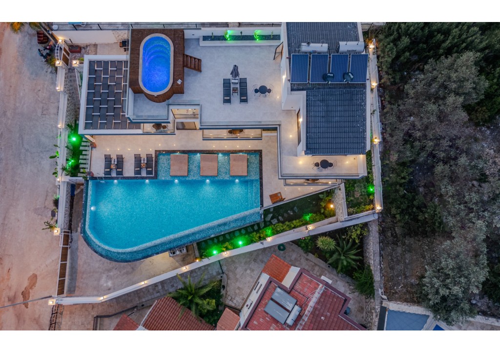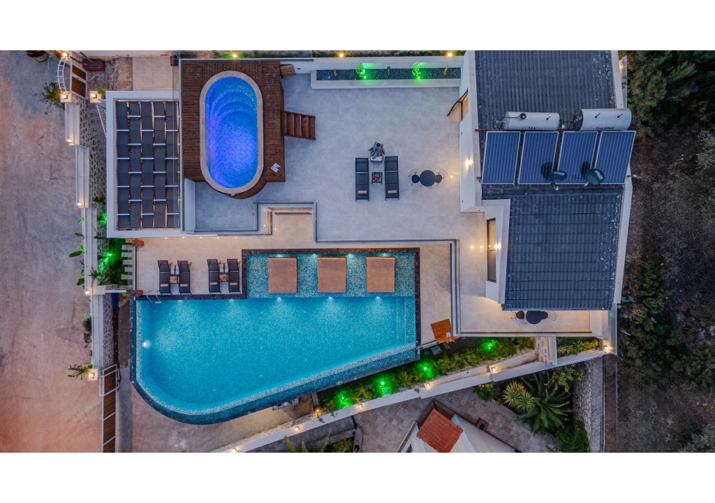 The outdoor pool heating system in our villa can be activated upon request for an additional fee of 20000 TL per week. The pool water temperature can reach up to 24–27 degrees. Guests are required to inform their pool heating requests at least 7 days before the check-in date.
