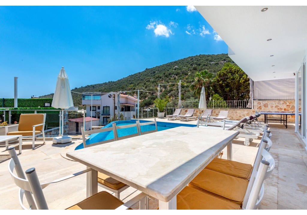Details: Table for 8, sunbeds, parasols.